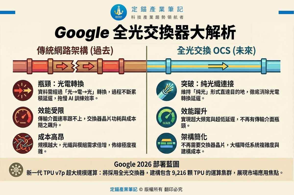 近期Google TPU引起市場話題,全光交換器(OCS)也獲得許多人關注,到底OCS與一般的交換器之間有何異同?可以解決AI訓練的哪些問題?與CPO的關係為何?